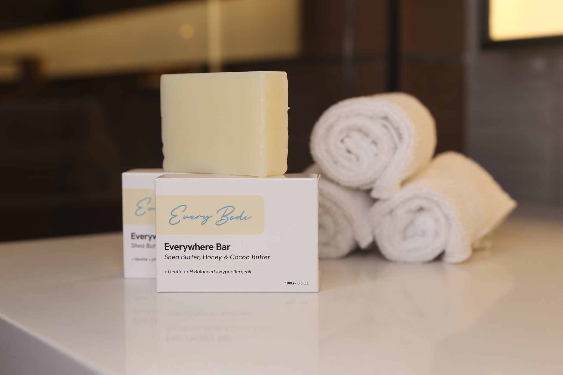 Every ingredient in the Everywhere Bar was chosen with intention—to cleanse effectively while protecting delicate skin.